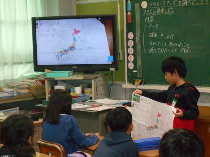 つながりマップのまとめの発表をしました。今回の学習を通して,都道府県に興味をもつきっかけとなりました。