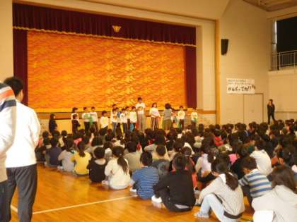 児童代表として,4年生の児童会より「緊張をほぐすためにお客さんをジャガイモだと思って頑張ってください」という応援のメッセージを送りました。
