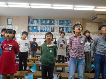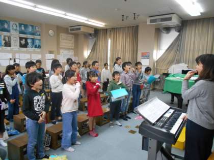 「レッツサーチフォートゥモロー」では,クレッシェンドを意識し,大きく口を開けて歌います。