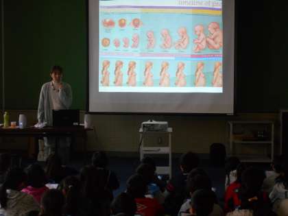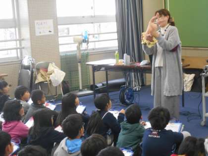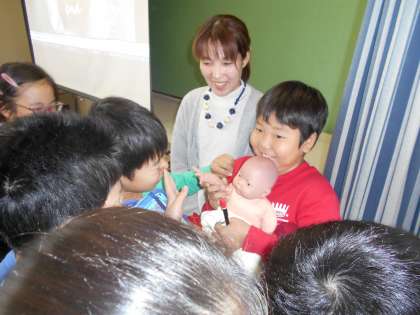 出産するときの赤ちゃんの様子について,人形を使って動きを見ることができました。