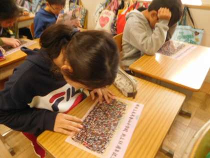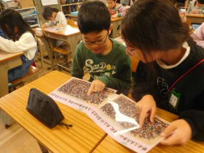 創立記念品としてファイルが配られました。写真から自分や友達を探しました。