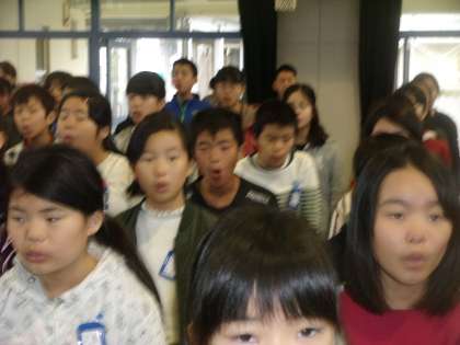 朝一番、しっかりと歌声を響かせました。読書感想文の表彰もありました。