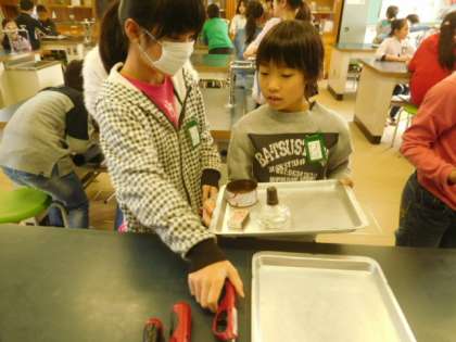 理科室へ行って加熱器具の扱い方について学習しました。準備も友達と確認しながら揃えました。