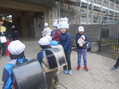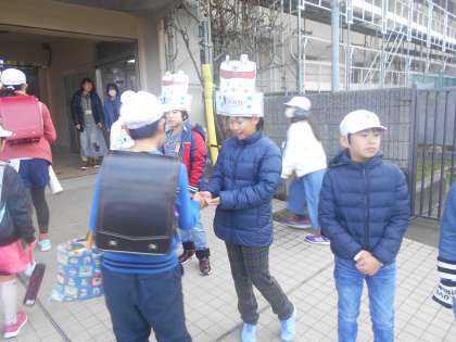 6の1があいさつ運動です。学校ウサギも元気に活躍します。