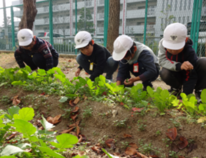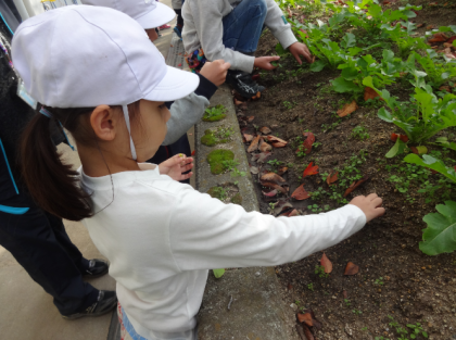 今日は大根のまわりに生えている草を抜きました。慣れてくると根っこから抜くことができるようになりました。