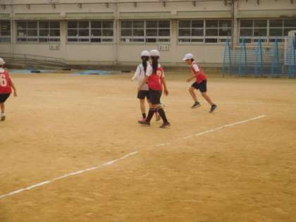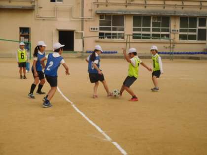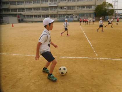 ボールに向かって動ける子が増えてきました。サイドマンへのパスもあり,作戦勝ちしたチームもいました。