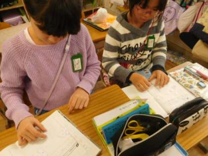 いろいろな四角形を仲間分けしました。三角定規を使って調べている子もいました。