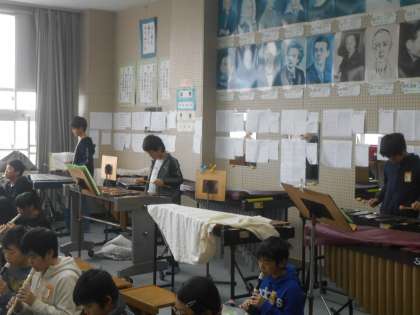 3学期の音楽発表に向けて、クラス合奏や学年合奏の練習をしています。