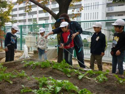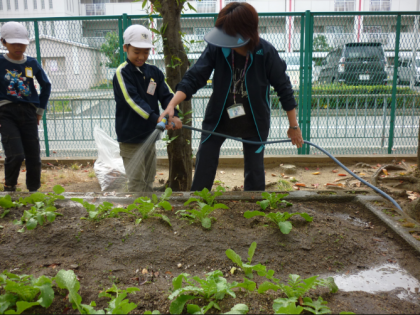 最後は、大根が大きく育つようにたっぷり水やりをしました。収穫できるようになるのが楽しみです。