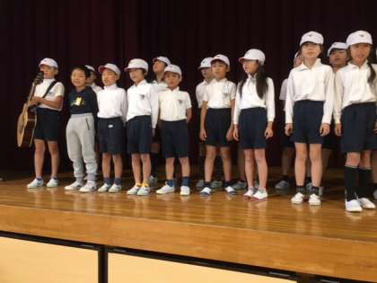 体育の前の休み時間にチャレンジフェスタの練習をしました。ピアノに合わせて元気に歌う姿を学校中の人に見てもらいたいね。