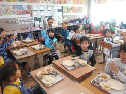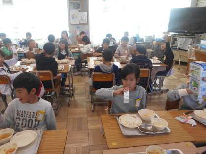 本当によくランニングがんばりました。みんなで牛乳で乾杯しました。