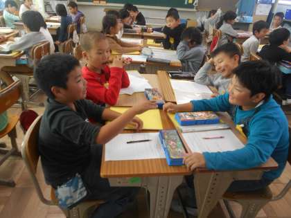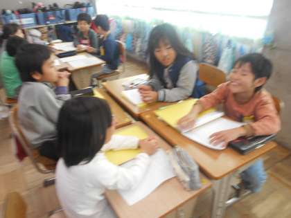 学習のまとめとして,今,自分が感じている東浅香山のUDが必要な部分を話し合いました。家の前の坂道が危ないから手すりがあればいい,駅にエスカレーターがつけばいいな,など話し合いました。