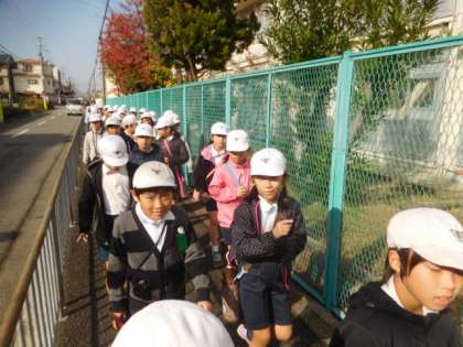 1,2時間目の授業後に金岡公園へ向けて,出発しました。