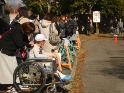参加できない子も一緒に金岡公園へ行って,みんなの応援をがんばりました。