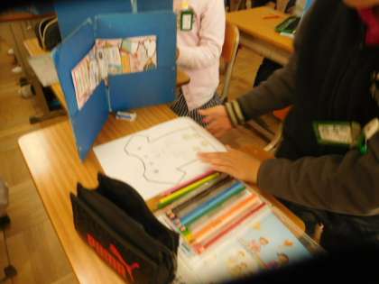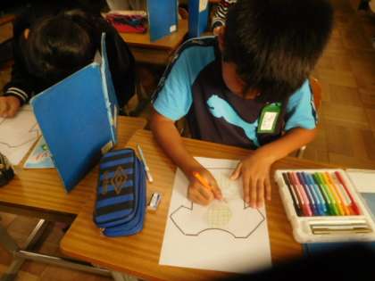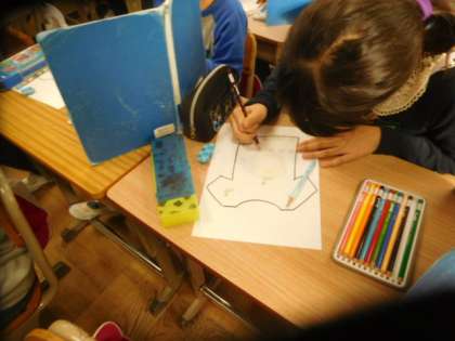 教えてもらった好きなものを使って,Tシャツを作りました。どんなTシャツを作っているかお互いに秘密にしました。