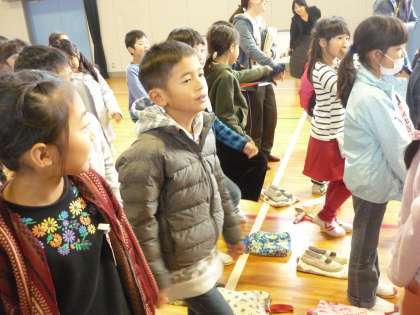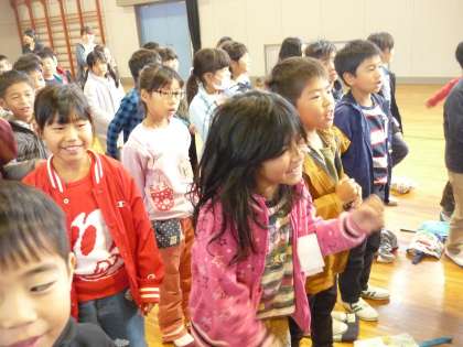 「さんぽ」の歌に合わせて,歌を歌いました。とっても楽しい気分です。
