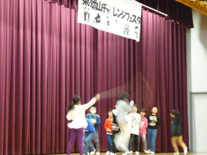 今日からチャレンジフェスタが始まりました。なかよしの児童もクラスの友だちと参加しています。なわとびやダンス、歌などいろいろな特技を披露しました。
