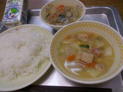 今日は北海道の郷土料理の石狩鍋をもとに作った献立でした。