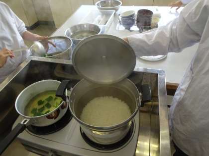 ごはんは鍋で炊きました。