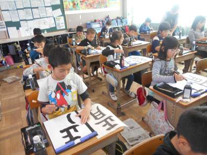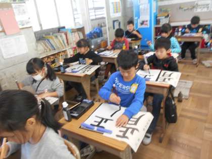 新年に向け「正月」を書きました。力強く練習しました。