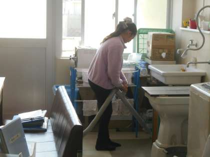 教室以外にも担当場所を掃除しています。