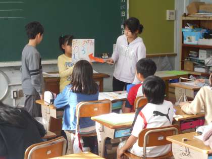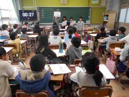 声の大きさ,文字の見やすさ,発表の言葉のわかりやすさを評価の観点として,他学年へ発表に行く班をみんなで決めました。