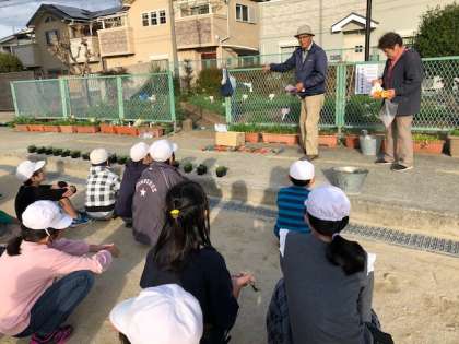 最後に,地域のボランティアの先生から,ビオラの苗を2株ずつおみやげにいただきました。