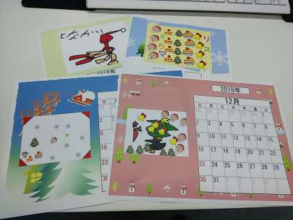 6日(木)のなかよしパソコンは,12月のカレンダーを作りました。12月といえばクリスマスということで,サンタクロースのスタンプを使ったり,トナカイの絵を描いたりして,作っていました。