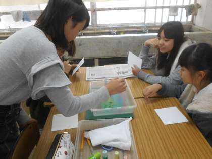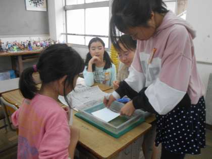 教科ごとに分かれて東三国丘小学校の6年生と一緒に授業を受けました。