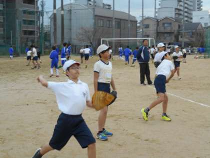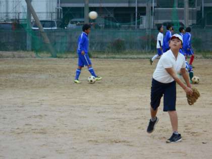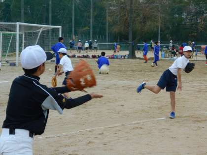 野球部では,中学生とキャッチボールをするなどして,練習に取り組みました。