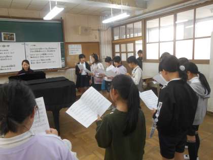 音楽では、先生の伴奏に合わせて、みんなで「カントリーロード」の合唱をしました。