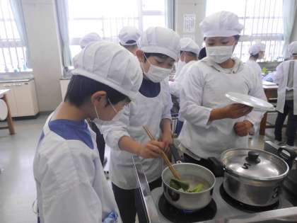 切った材料を湯がいたり,だしをとったりすることに苦労していました。