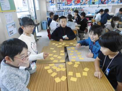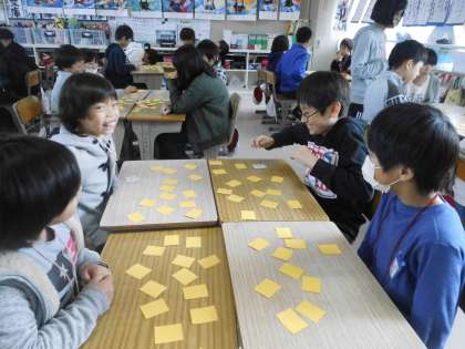 アルファベットの大文字小文字を使って神経衰弱をしました。楽しく活動しました。