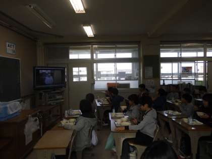 給食委員会がつくったビデオを見ました。もう一度,給食を取りに行くときや食器の返し方などを再確認しました。