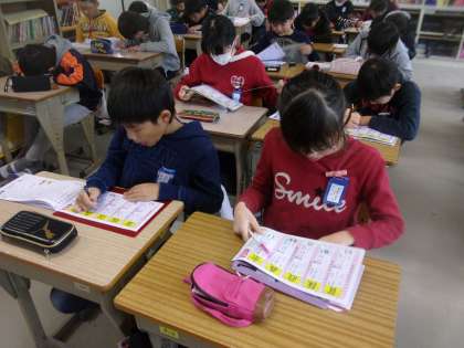 新出漢字の練習をしています。あと少しで終わります。