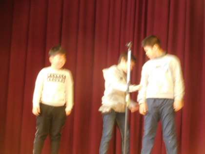 チャレンジフェスタでお笑いクラブの発表があり,クラスの友だちの活躍を見に行きました。