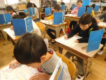 「垂直,平行と四角形」の単元テストをしました。丁寧に図形を描くことができたかな?