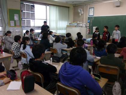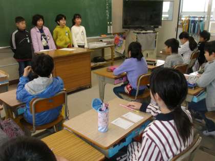 4年生が水の大切さについて話しにきてくれました。節水しましょう!