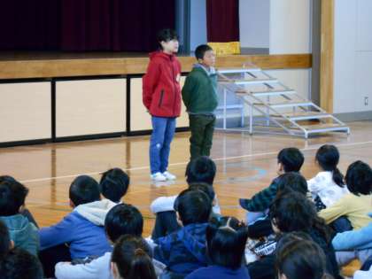 司会と募金の集計報告を務め,4年生の代表として児童会活動をがんばっています。