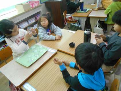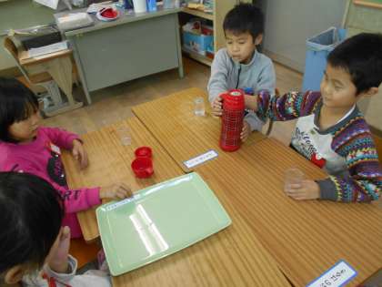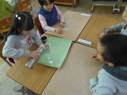 どの水筒に一番多く水が多く入るか,どれくらい多く入るのかを調べました。