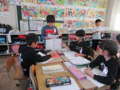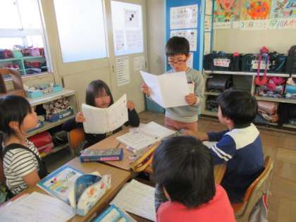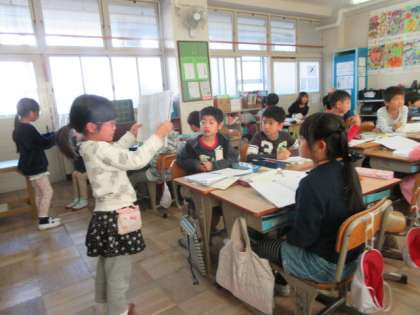 まず,グループで発表しました。発表原稿を読みながら,ワークシートに描いた絵も,見てもらいました。