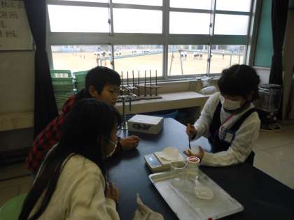「水にとけたものの重さはどうなるのか」実験して調べました。食塩を水にとかし,とかす前ととかした後の重さを比べました。
