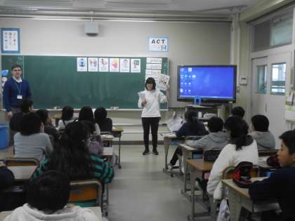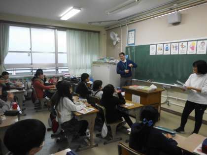 今日はNSの先生と外国語の先生の二人が来てくれました。仕事や職業を英語で言う活動をし,その後ゲームをしました。