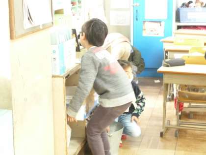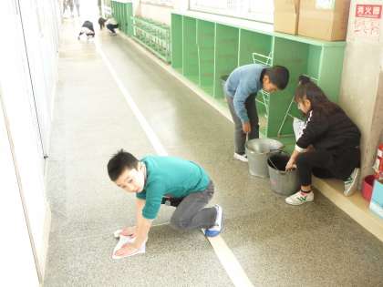 冷たい水にも負けず,黙々と掃除をしています。とてもきれいになりました。