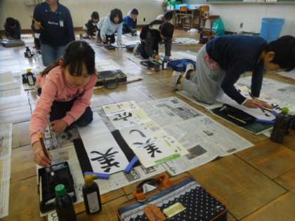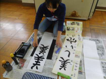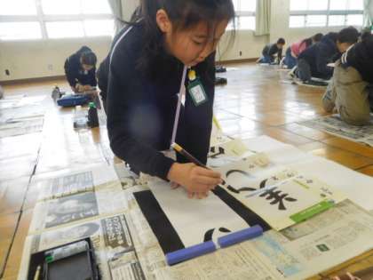 いつもの半紙と違う大きさなので,姿勢や下敷きの位置など,一文字ずつ意識しながら進めていきました。