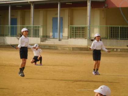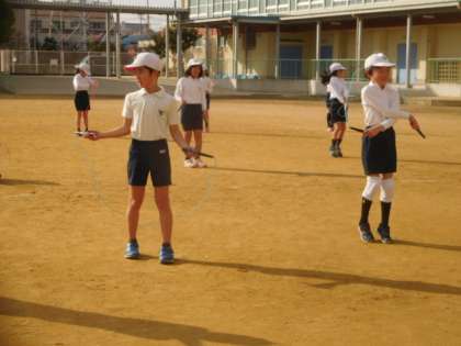 短縄をしました。二重跳びができる人が多かったですが,後ろ飛びが苦手な人も多かったです。休み時間や放課後に挑戦してほしいと思います。