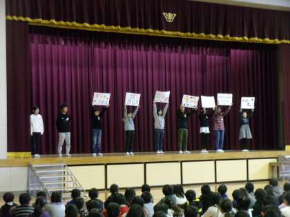 今日の児童集会では、保健委員会と給食委員会から、