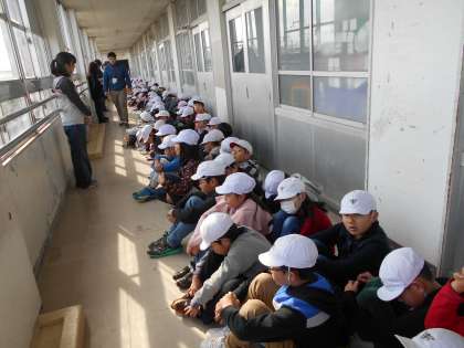 津波が起きたという想定で,避難訓練をしました。常に備えておきましょう。