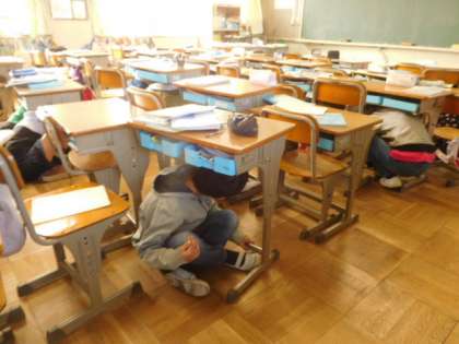 休み時間に地震が来たことを想定した訓練をしました。