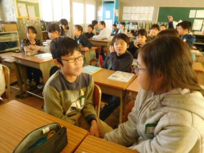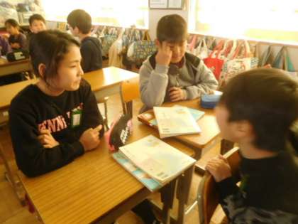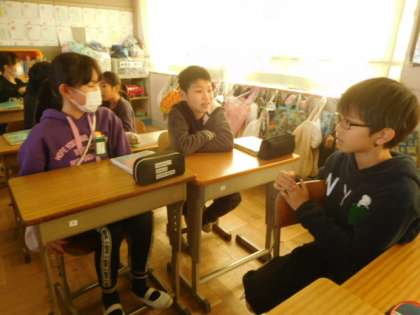 教室では「こんなときどうする?」と友達とクロスロードゲームで意見を交換しました。